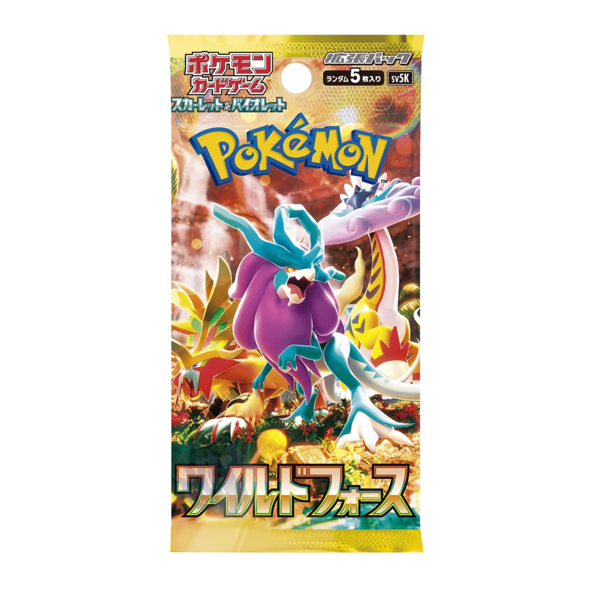 The ranks of Pokémon from the Past and Future continue to grow! Walking Wake ex breaks free from the past alongside Raging Bolt ex, while Iron Leaves ex delivers high-tech justice alongside Iron Crown ex. Outside Area Zero, Wugtrio and Farigiraf change types as Pokémon ex TeraCrystal, and Pokémon Trainers everywhere prepare for the return of ACE SPEC cards, with unique and powerful effects. A rip in time brings wild beasts and cybernetic visions into the battle in the Pokémon TCG: Scarlet & Purple—Time Forces expansion!
