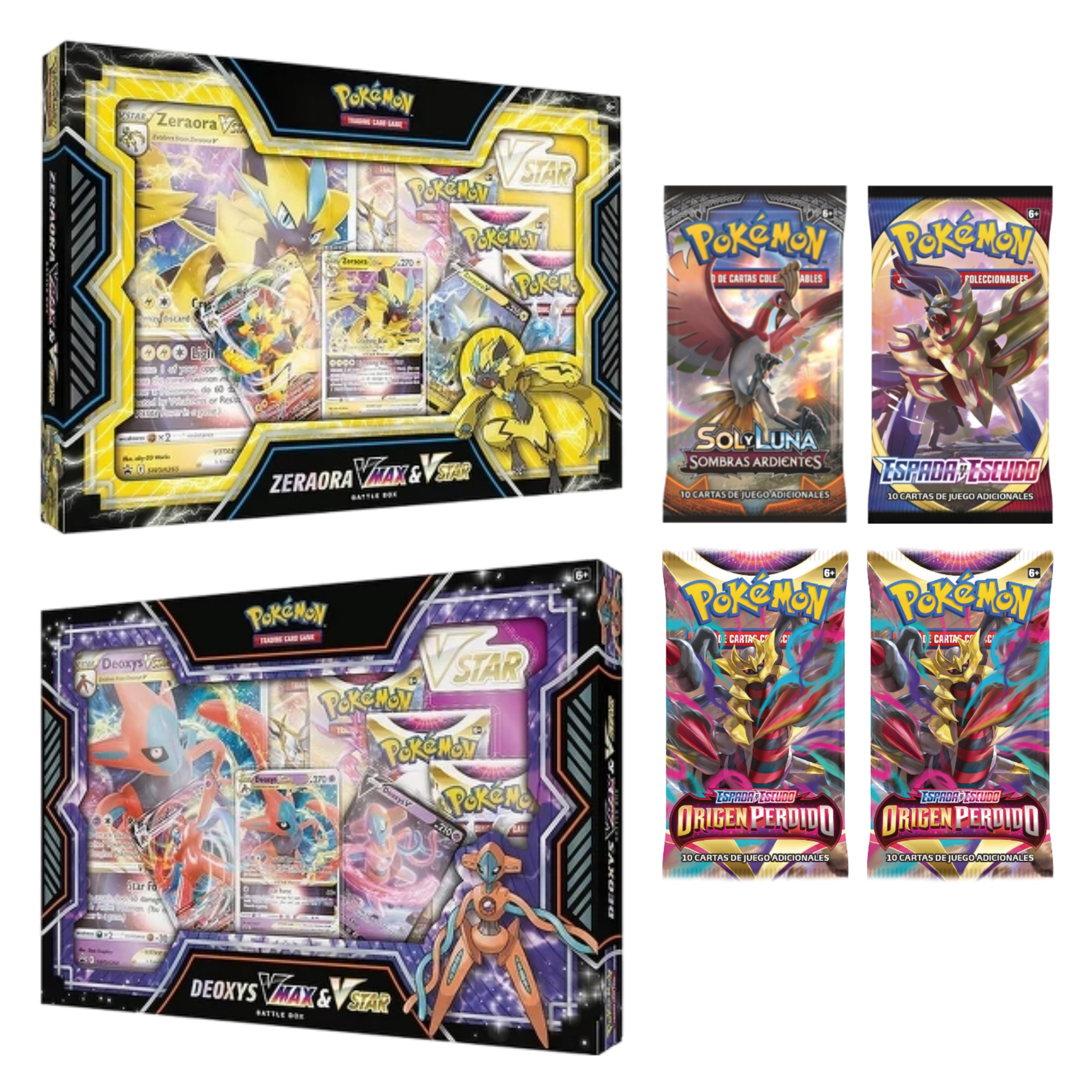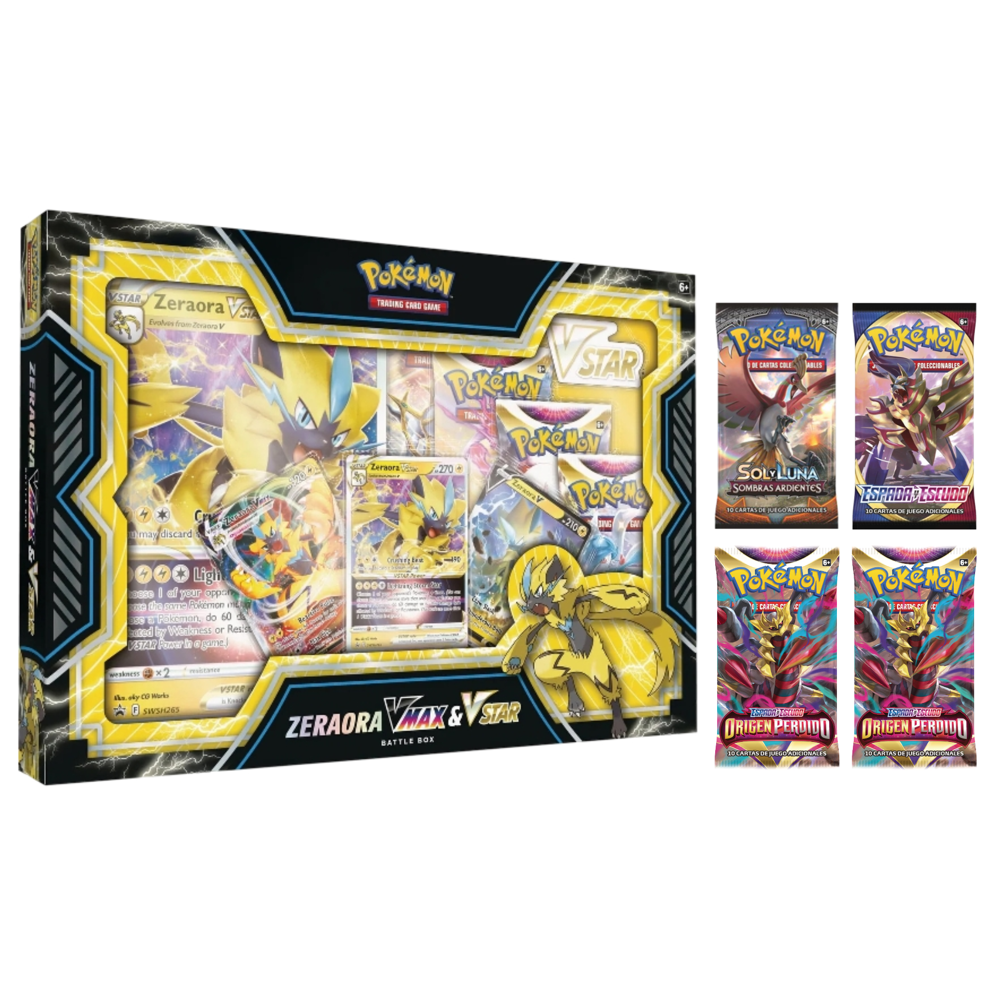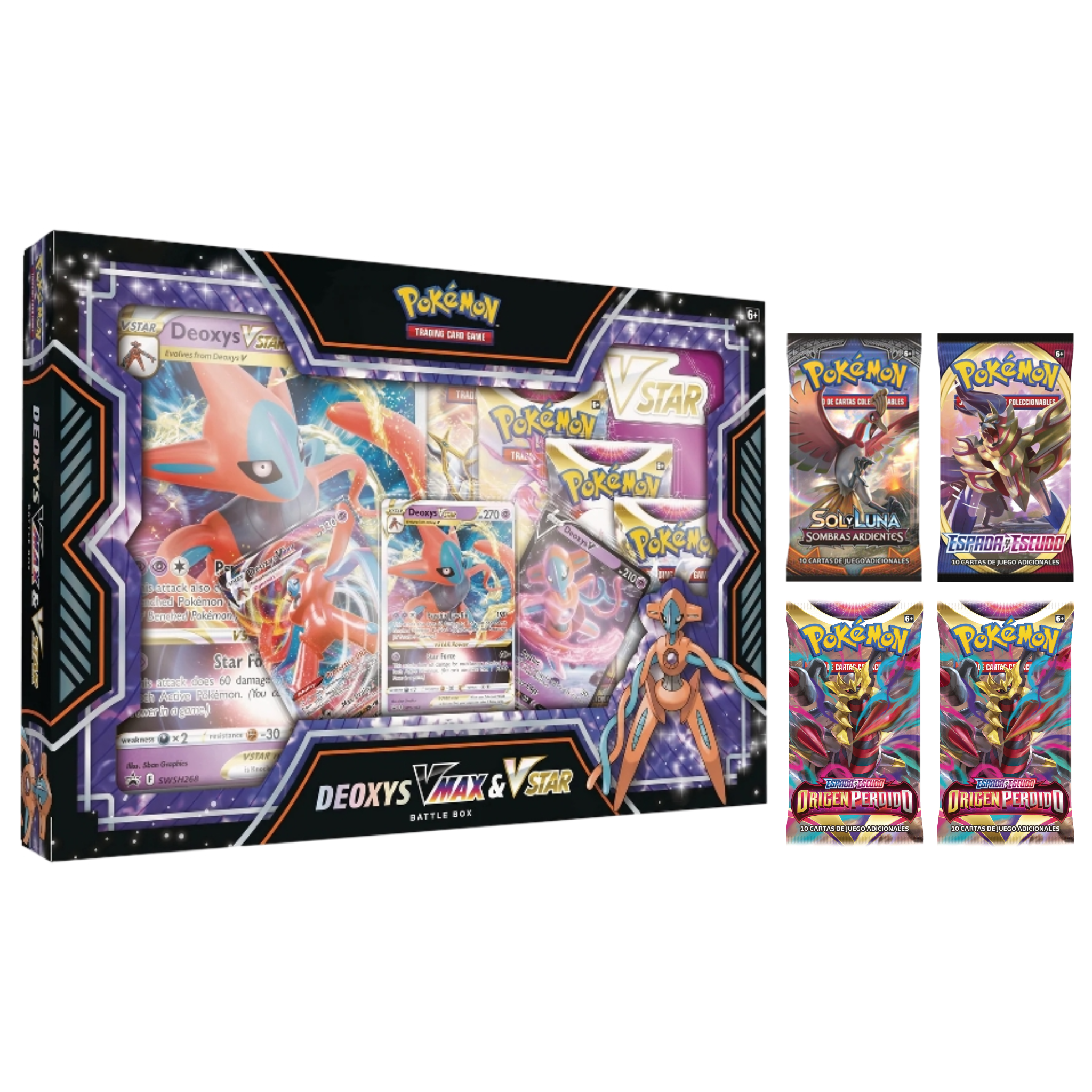 You can evolve Deoxys V to take advantage of the high HP of Deoxys VMAX in Defense Forme or the devastating VSTAR Power of Deoxys VSTAR in Attack Forme, or evolve into Zeraora V to counter your opponent’s strategy with the hard-hitting attacks of Zeraora VMAX or the flashy lightning VSTAR Power of Zeraora VSTAR. You’ll also find an awesome oversized card showcasing the featured VSTAR Pokémon, booster packs, a strategy guide, and a VSTAR scoreboard for battle!