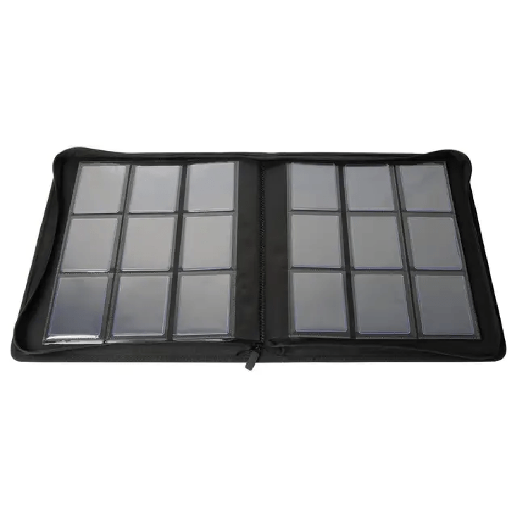 Comprend 24 pages de 9 compartiments pour toutes les cartes à jouer de taille standard et japonaise, à double pochette et à l'intérieur d'un toploader.