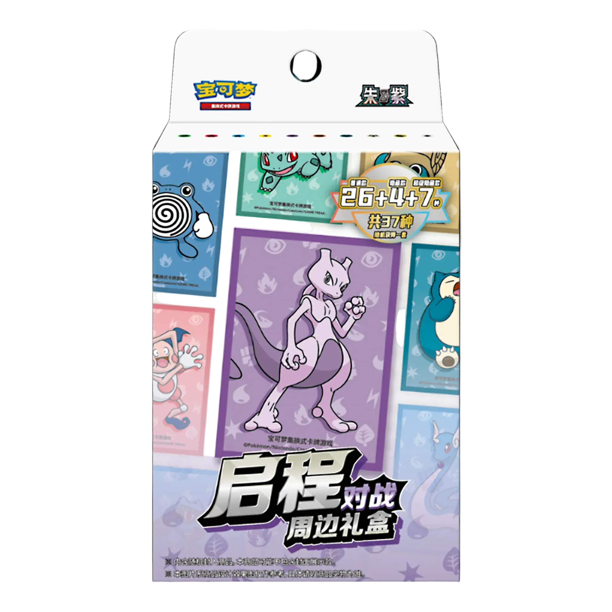 Comienza tu colección de Pokémon en chino simplificado con la Journey Battle Peripheral Gift Box, diseñada tanto para coleccionistas como para entrenadores competitivos. Este set incluye un estuche para contadores de daño, ideal para guardar monedas, marcadores VSTAR y otros accesorios de batalla. También existe la versión Mewtwo, que incluye fundas con ilustraciones temáticas.