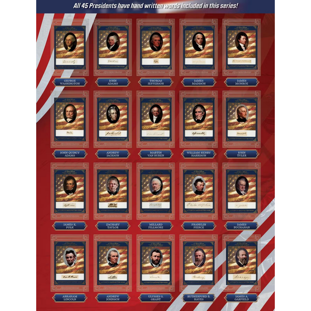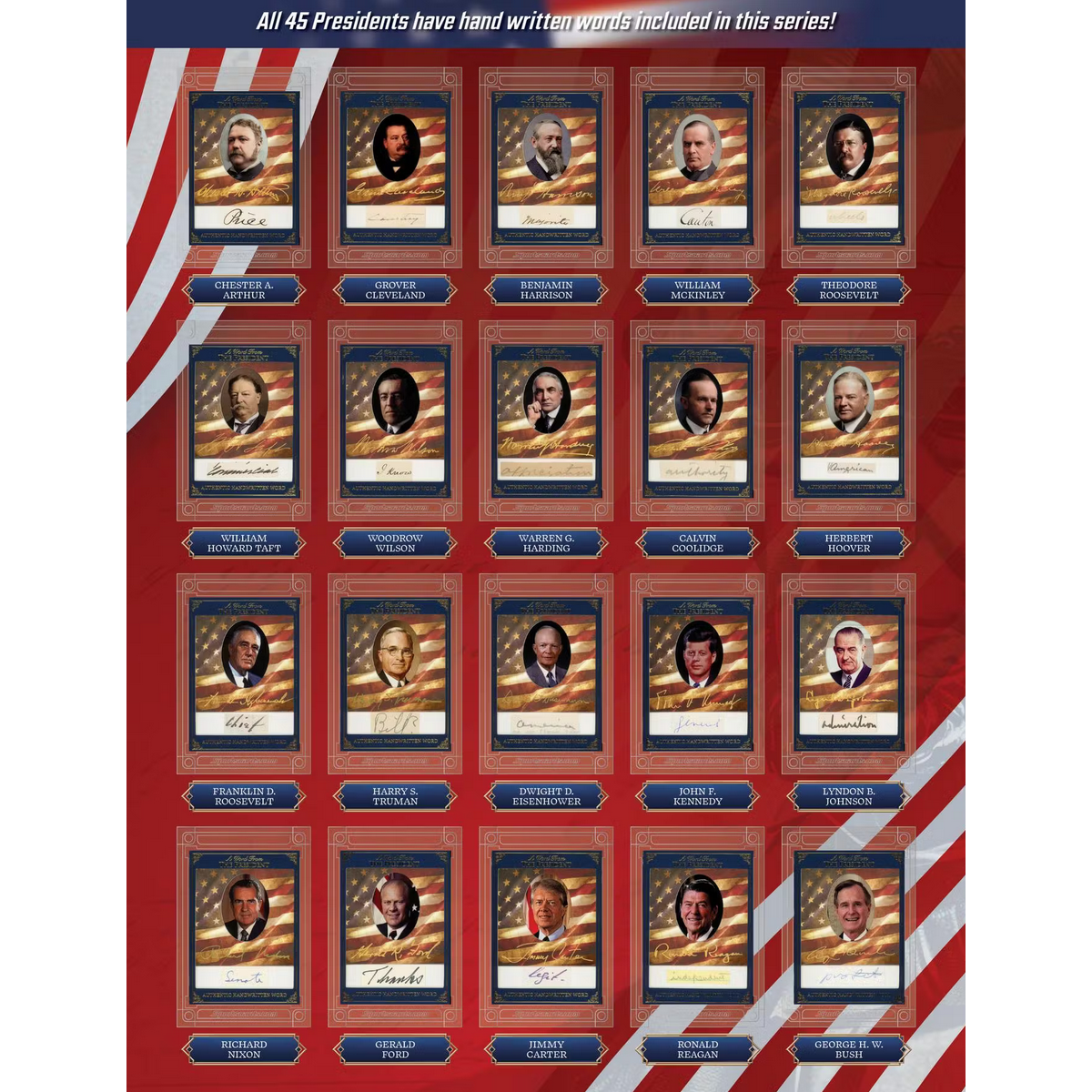Muchas, si no todas, las tarjetas de la serie A Word from the President se convierten en auténticos 1 de 1, ya que cada una contiene una palabra manuscrita única de alguno de nuestros Presidentes.