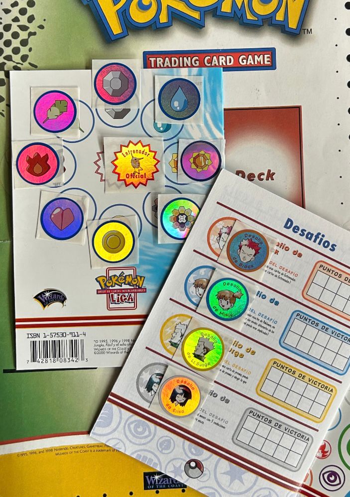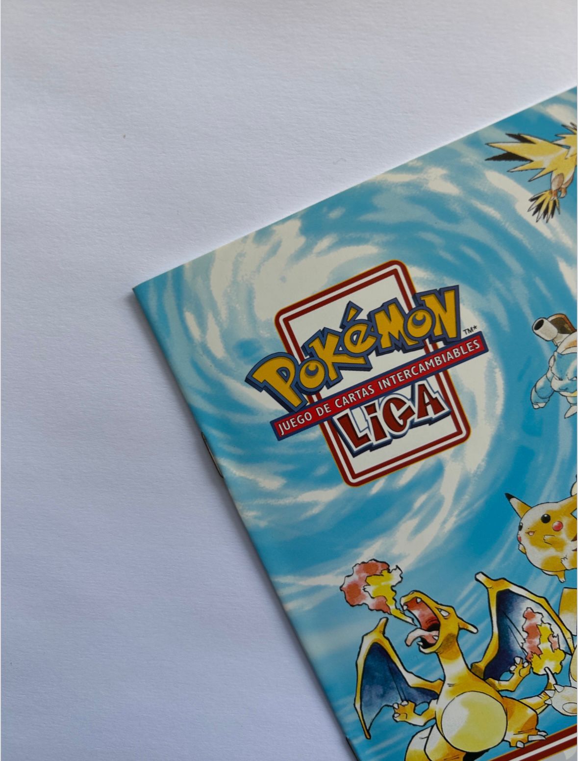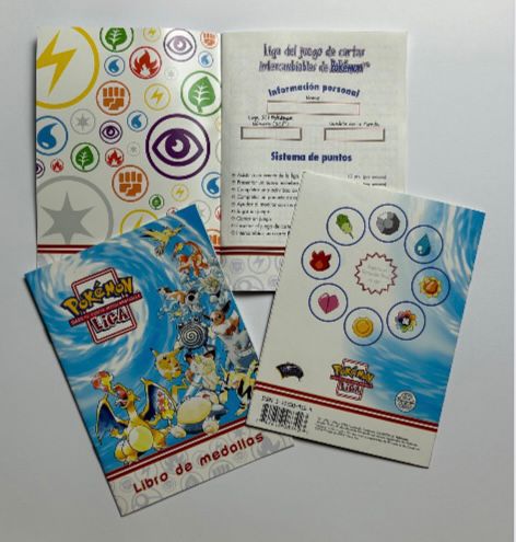 Este exclusivo libro de medallas es un coleccionable único de la Liga Pokémon, diseñado especialmente para los amantes del Pokémon. Con una portada vibrante que muestra a algunos de los Pokémon más icónicos, como Charizard, Pikachu y Zapdos, este libro permite a los entrenadores organizar y exhibir las pegatinas de medallas obtenidas en la Liga Pokémon.