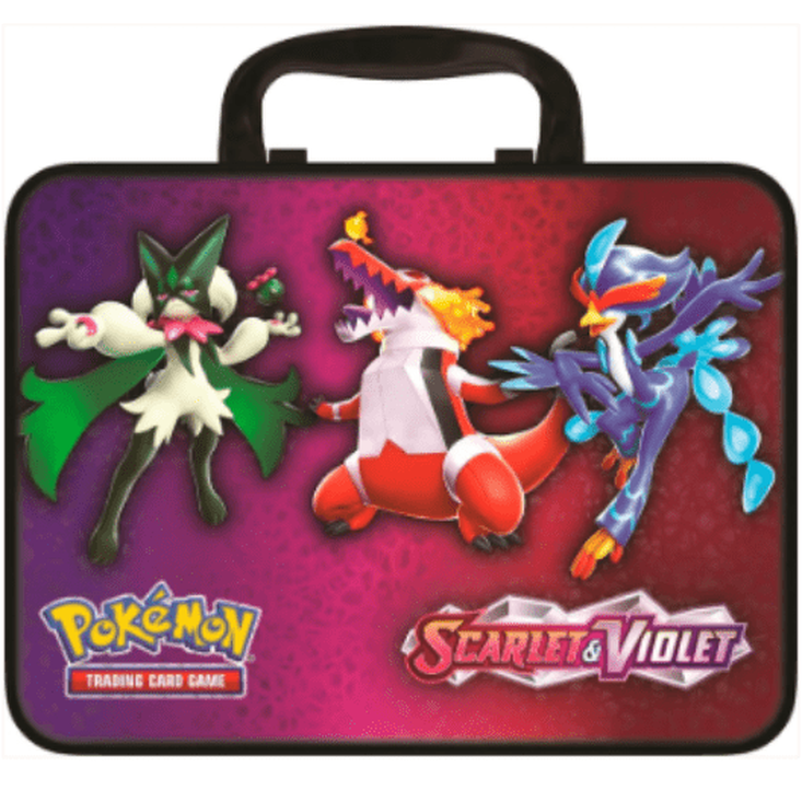 Descubre todo lo que puede ofrecer un maletín temático de Charizard en esta edición especial de invierno 2023. Incluye 6 sobres de Pokémon TCG (versión inglesa), tres cartas promocionales foil (Meowscarada, Skeledirge, Quaquaval), mini-portafolios, moneda metálica, 4 hojas de pegatinas y carta de código para Pokémon TCG Live. Todo dentro de un maletín de metal resistente con asa, perfecto para coleccionistas, jugadores y regalos.