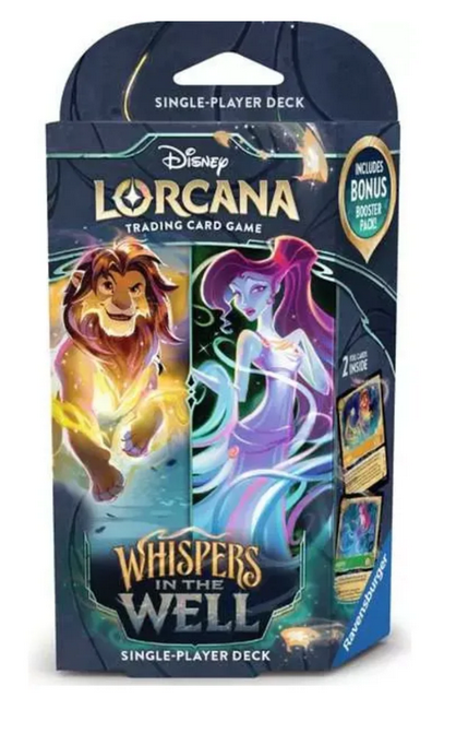 Sumérgete en el misterioso mundo de Lorcana: Whispers in the Well con estos mazos temáticos cuidadosamente diseñados. Cada mazo combina personajes icónicos, hechizos únicos y estrategias creativas que reflejan la intriga y los secretos que se ocultan en el pozo. Perfectos tanto para coleccionistas que buscan completar su universo de Lorcana como para duelistas que quieren explorar tácticas nuevas y sorprendentes. Desbloquea combinaciones poderosas, domina la magia de los susurros y lleva tu juego a otro nivel.
