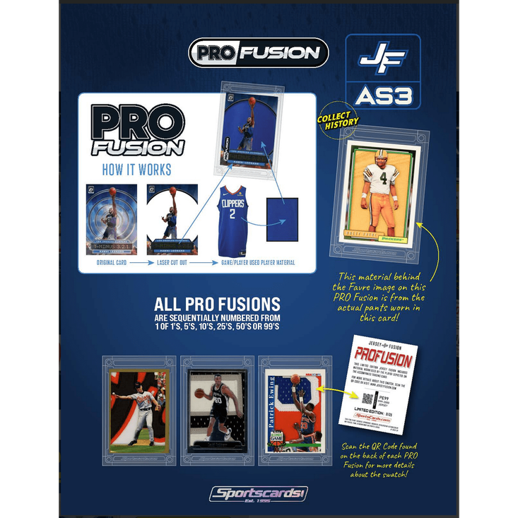 Jersey Fusion es un coleccionable que combina tarjetas de intercambio auténticas con parches usados en el juego por los jugadores. Proporciona un nivel de autenticidad único, permitiendo a los coleccionistas ver el origen de la muestra de la camiseta a través de un código QR.