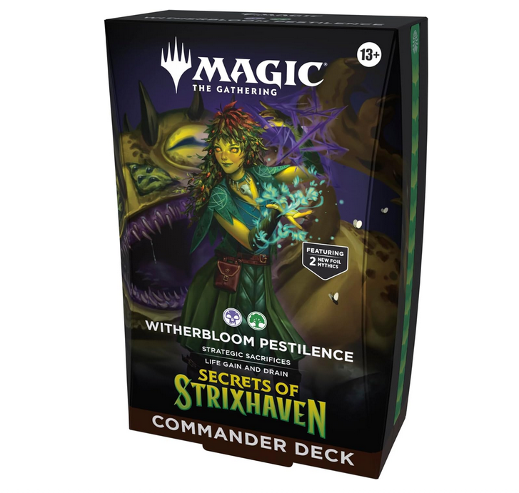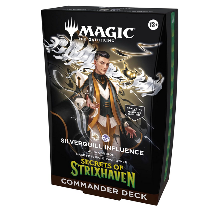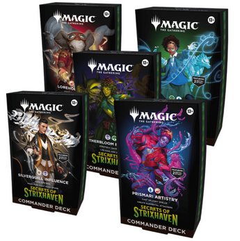 Sumérgete en el mundo mágico de Strixhaven con este increíble display de mazos Commander de Magic: The Gathering. Este producto incluye los mazos preconstruidos completos, listos para jugar desde el primer momento, cada uno inspirado en una de las facultades de la universidad de Strixhaven.