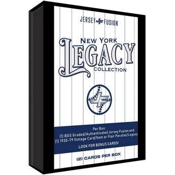 La Colección New York Legacy incluye una selección de cartas vintage de toda la vida y una edición Jersey Fusion basada en el set 2008 Upper Deck Yankee Stadium Legacy, ¡que incluía más de 6,000 cartas! Logramos obtener material usado en juegos/jugadores para casi la mitad del set.