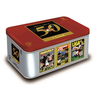 Panini | Lata de la LIGA 2021-22 50 Aniversario 2021 con 75 cartas en su interior en Español