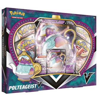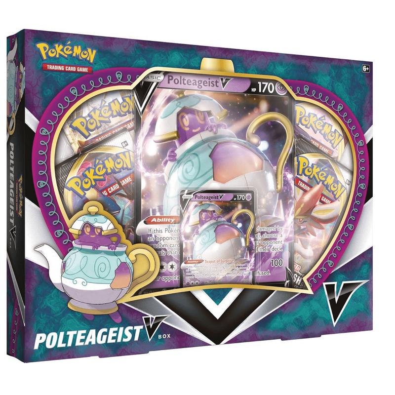 A veces, un Pokémon es un poco más refinado y fantasmal de lo que esperas, como Polteageist V, con forma de tetera y lleno de una infusión muy potente. En esta caja, encontrarás a ese sofisticado Pokémon de Té Negro en dos tamaños, junto con tesoros de varios paquetes de refuerzo de JCC Pokémon.
