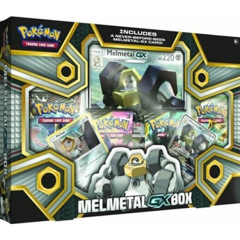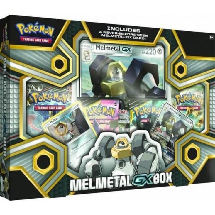 ¡Qué increíble descubrimiento! Los recientemente descubiertos Pokémon singulares Meltan y Melmetal son los protagonistas de la nueva colección Melmetal-GX de JCC Pokémon. Esta colección contiene cartas holográficas de estos impresionantes Pokémon de tipo Metálico y todo el poder de un Pokémon-GX. Además, ¡hazte con 4 paquetes de mejora de JCC Pokémon para ampliar tu colección!