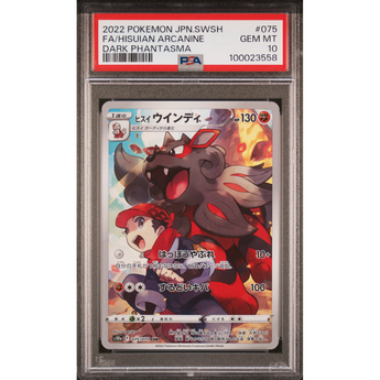 Carta Gradeada por PSA con un 10 de Arcanine de Hisui (s10a 075) de Dark Phantasma en estado Gem Mint en idioma Japonés.