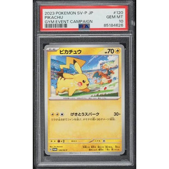 Carta Gradeada por PSA con un 10 de Pikachu Promo (SV-P 120) en estado Gem Mint de la colección de cartas promocionales de Scarlet&Violet en idioma Japonés.