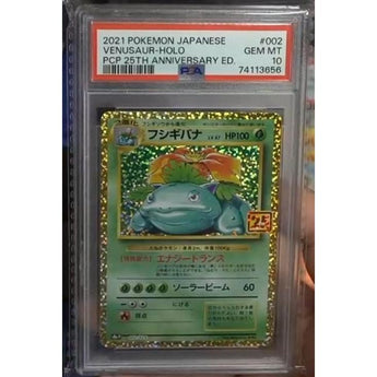 Carta Gradeada por PSA con un 10 de Venusaur (s8a-P 002) en estado Gem Mint de 25th Anniversary Edition en idioma Japonés.