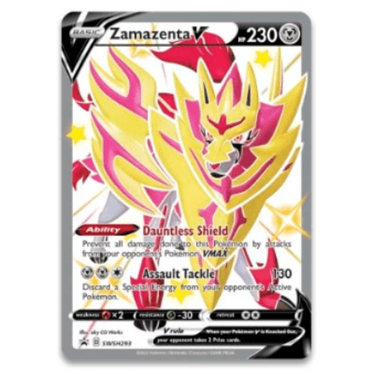 Los legendarios héroes Zacian y Zamazenta resplandecen con nuevos Poderes V-ASTRO, ¡junto a un grupo estelar de Pokémon y Entrenadores que llegan para celebrar la era de los Pokémon V! Descubre deslumbrantes ilustraciones en la Galería de Galar y enarbola la fuerza de excepcionales y poderosos Pokémon, como Charizard, que aparece en forma de Pokémon V-ASTRO y Pokémon Radiante. ¡Muchos otros Pokémon irán desvelando sus historias de combate a medida que la serie Espada y Escudo llega a su punto álgido con la expansión Cenit Supremo de JCC Pokémon!