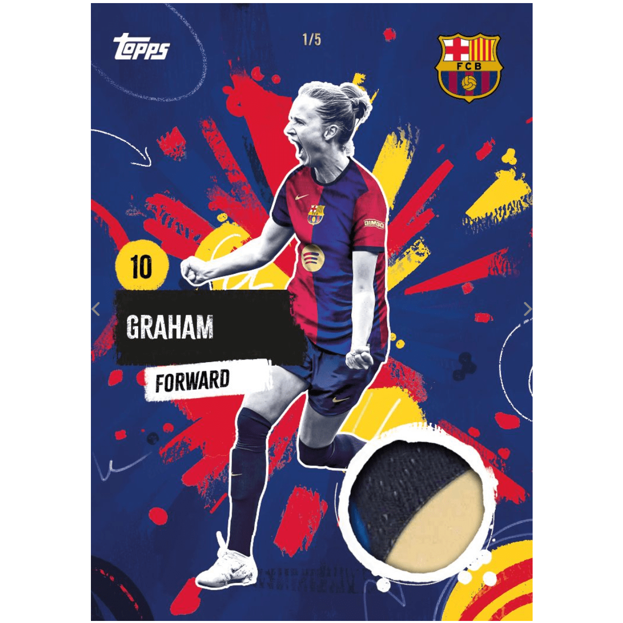 Para coronar esta colección, persigue las excepcionales cartas Badge of Honour Autograph Relics únicas, centradas en el prestigioso y reconocido escudo del FC Barcelona, con elegantes bordes dorados que realzan su diseño.