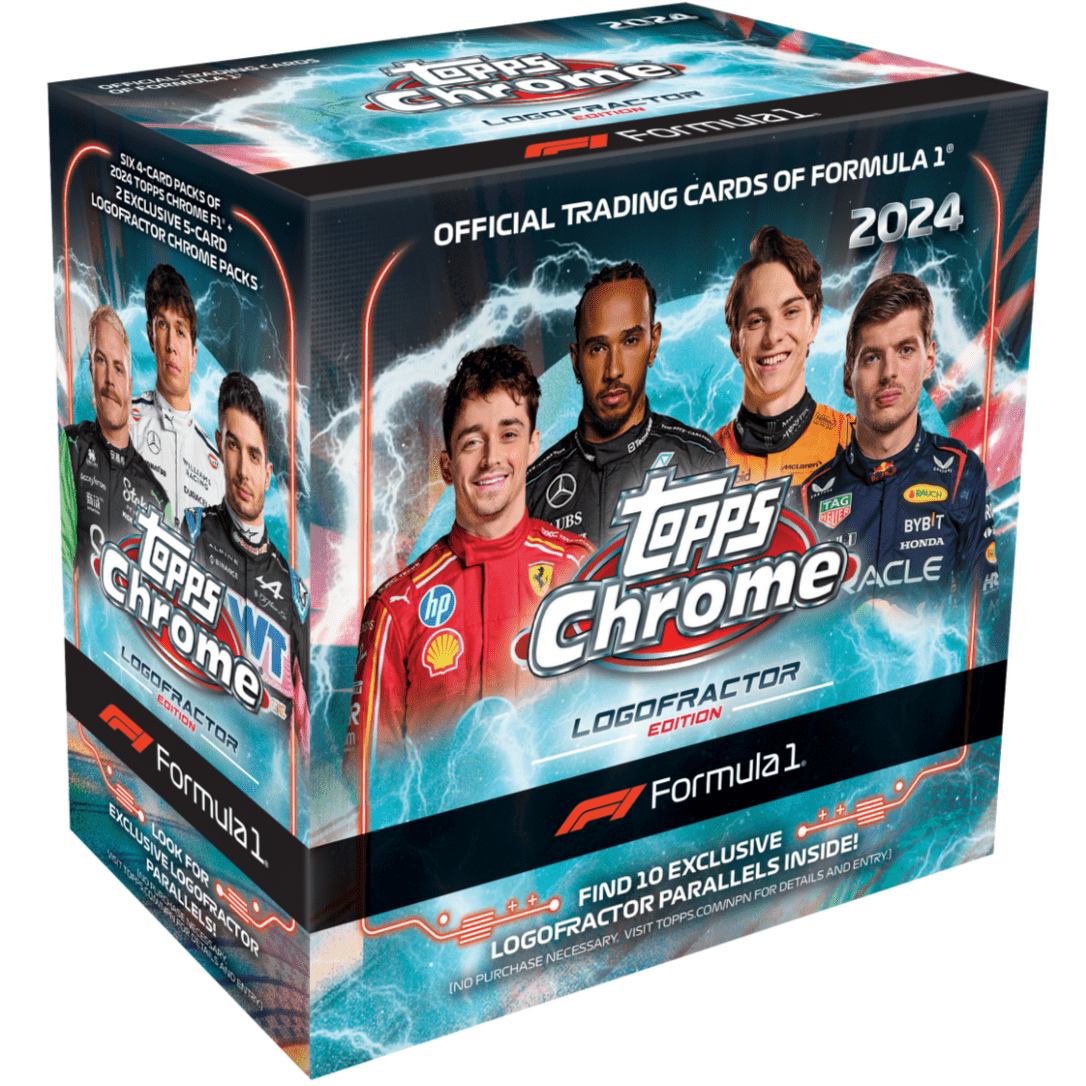 Desde que se apagan las luces hasta la última vuelta, colecciona las prestigiosas cartas Topps Chrome® Formula 1® 2024 que muestran a los mejores jóvenes talentos, superestrellas y leyendas selectas de las carreras de Fórmula 1®.