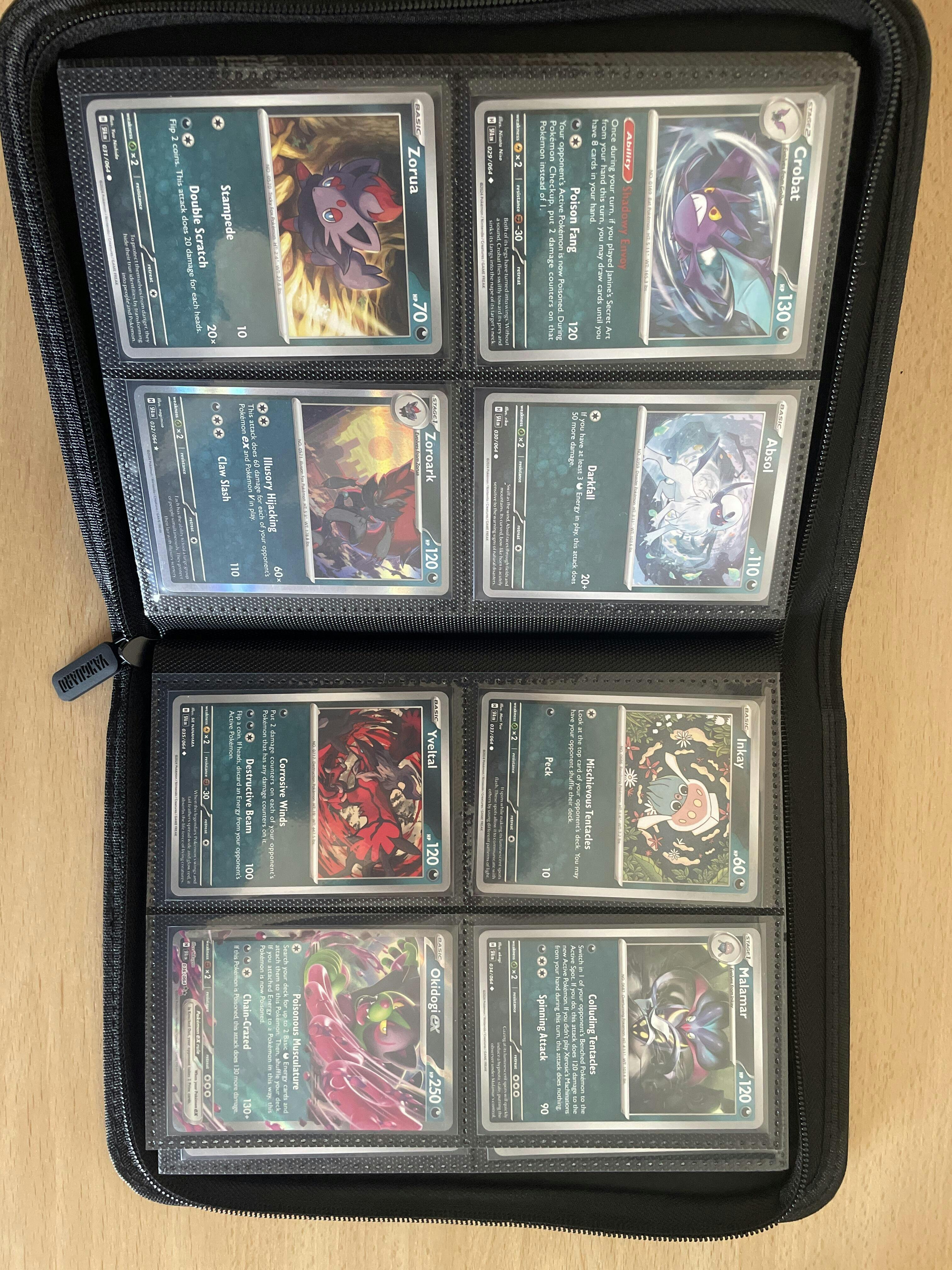 Álbum para cartas tamaño estándar de 3x3 huecos. Álbum de tamaño medio, con 20 páginas (unidas al álbum) de 18 compartimentos. Ideal para cartas Pokémon, One Piece, Dragon Ball, Yugioh, Digimon, Magic, Disney Lorcana, Union Arena, Weiss Schwarz o Deportivas. Con cierre de cremallera de alta calidad para un mejor transporte y protección.