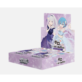 La Weiss Schwarz Booster Box Re:ZERO -Starting Life in Another World- Vol.3 es una caja de sobres del juego de cartas coleccionables Weiß Schwarz dedicada al popular anime Re:Zero. Cada caja incluye 12 sobres con 8 cartas por sobre, entre las que se encuentran nuevas ilustraciones de los personajes más queridos, como Emilia, Rem, Ram y Beatrice.